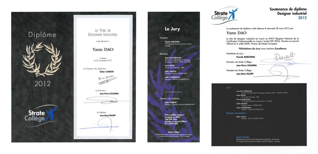 Diplômé par l’école strate en 2012 sur le campus de Paris avec les Félicitations du Jury mention EXCELLENCE