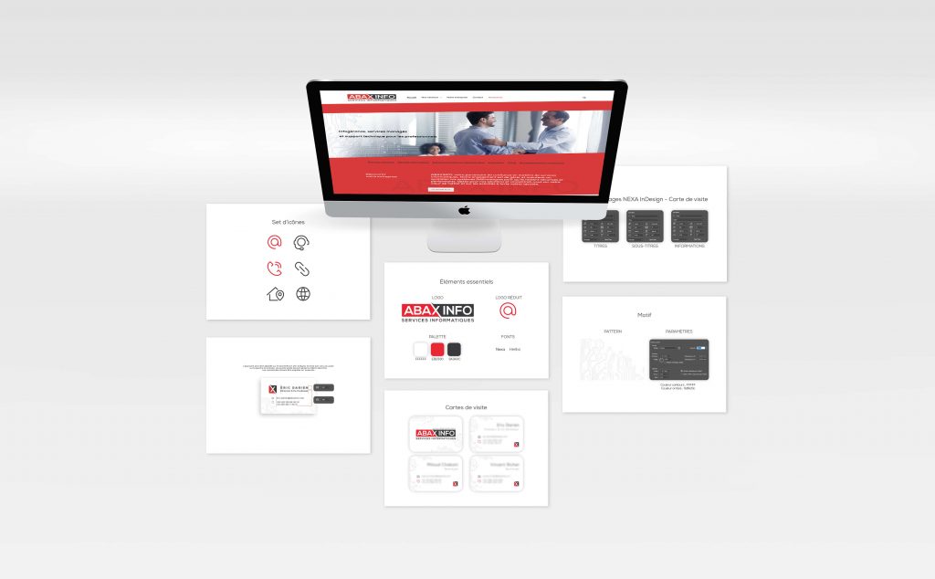 Accompagnement de l’entreprise de services informatiques Abax Info en 2023. Rationalisation de son identité de marque, élaboration de la charte et de la boîte à outils identitaire, création de sa carte de visite et conception de son nouveau site internet, avec un accompagnement spécifique en conception-rédaction pour vulgariser et rendre ses offres de services plus intelligibles.
