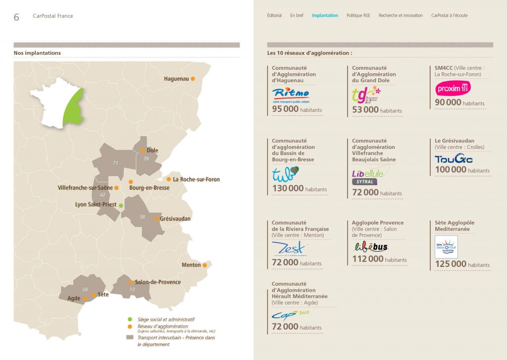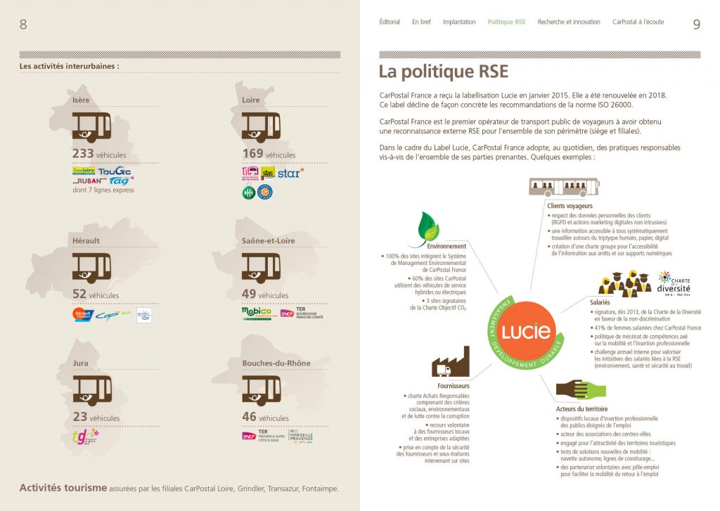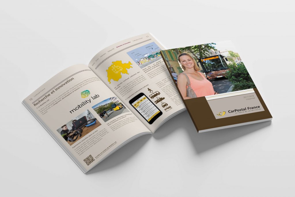 Réalisation, mise en page et édition du rapport d’activités annuel de l’entreprise de transport CarPostal France de 2014 à 2016.