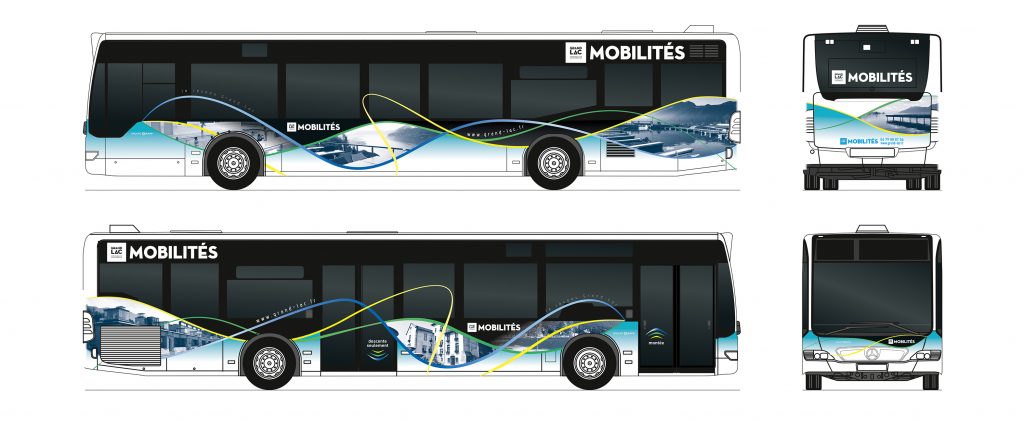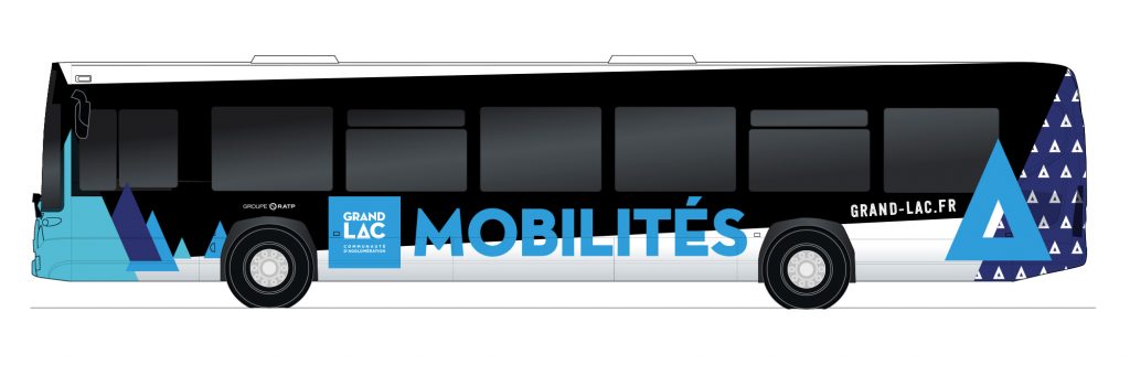Accompagnement de RATP dans sa réponse à appel d’offres pour Grand Lac mobilités – Aix-les-Bains en 2020 : Propositions de coverings de bus et création de gabarits de présentation.