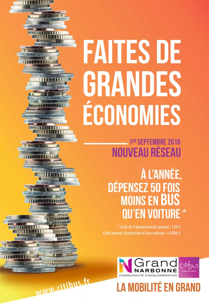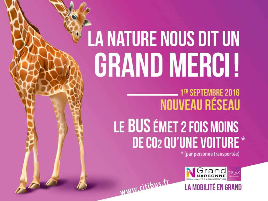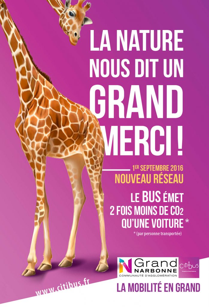 Communication et information voyageurs de l’ensemble du réseau Citibus Grand Narbonne en 2016 :