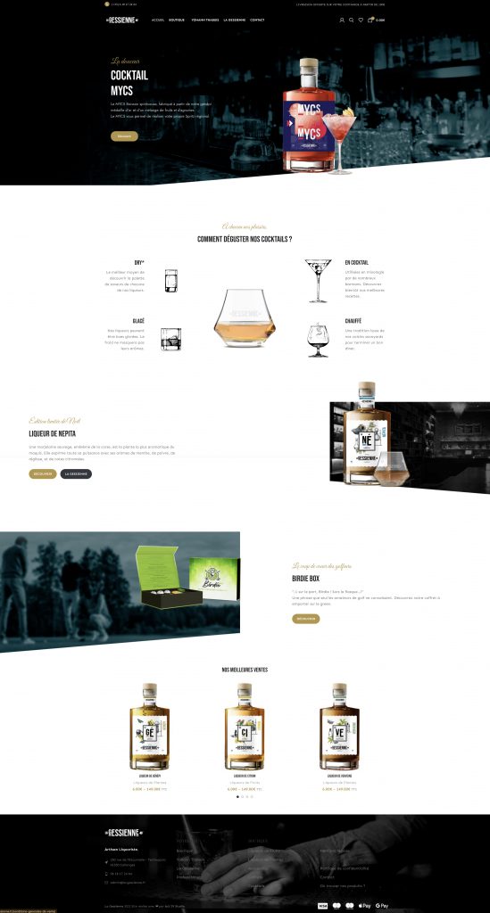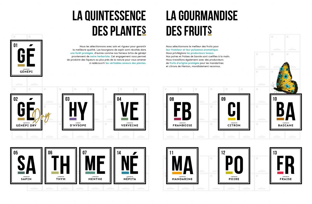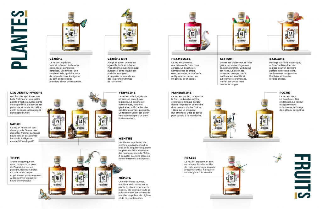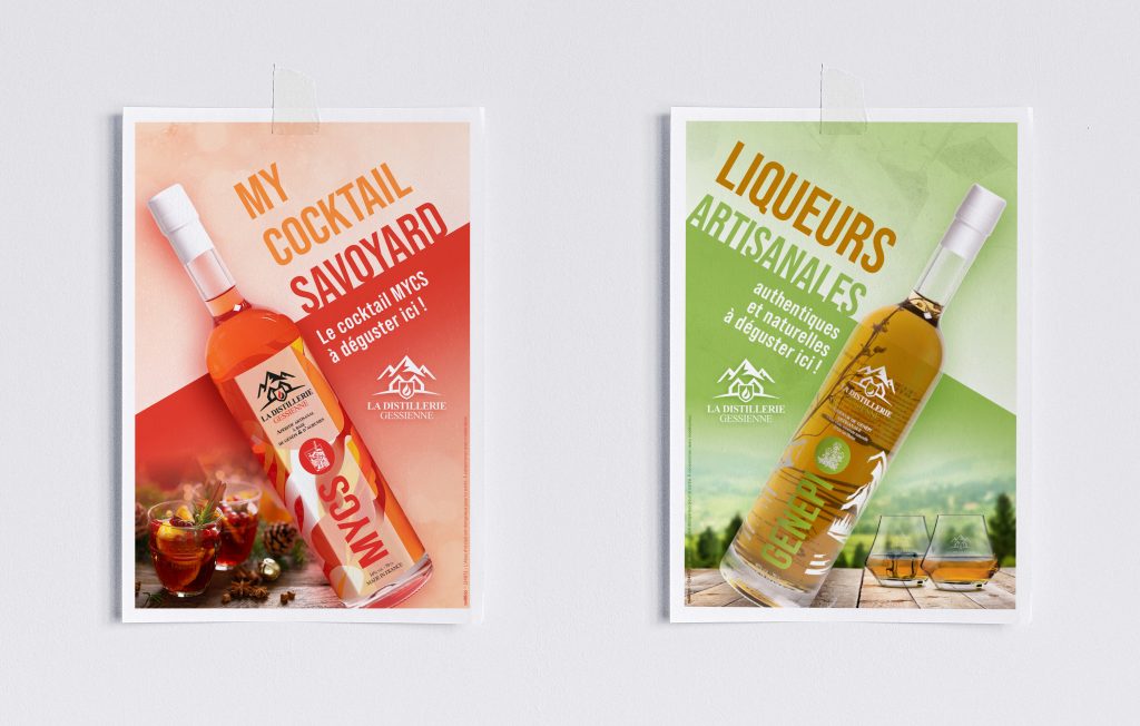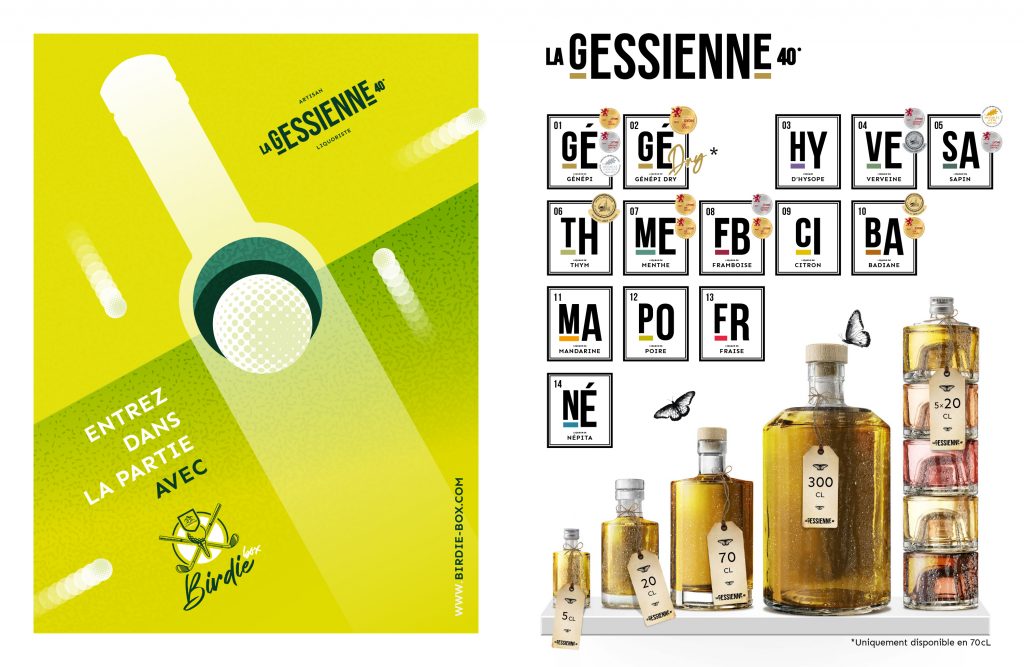 Conception et réalisation de l’ensemble du branding : du logo aux supports commerciaux en passant par la recherche de nom, du site internet, etc… pour le producteur de liqueurs La Gessienne en 2021.