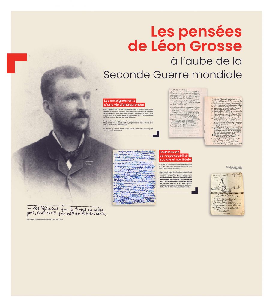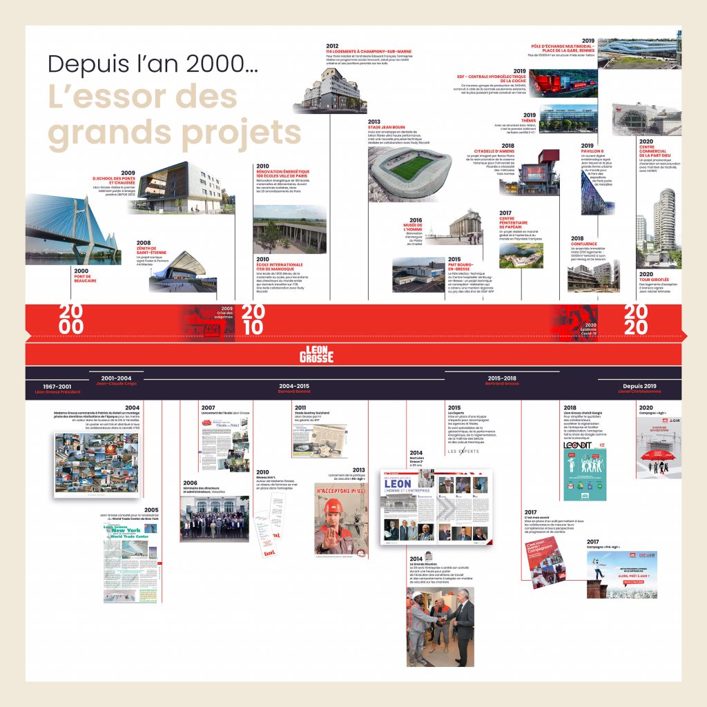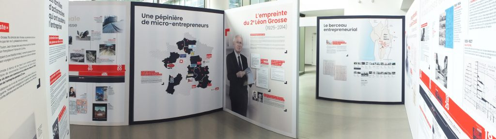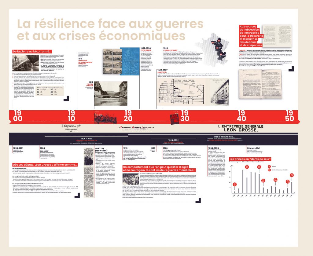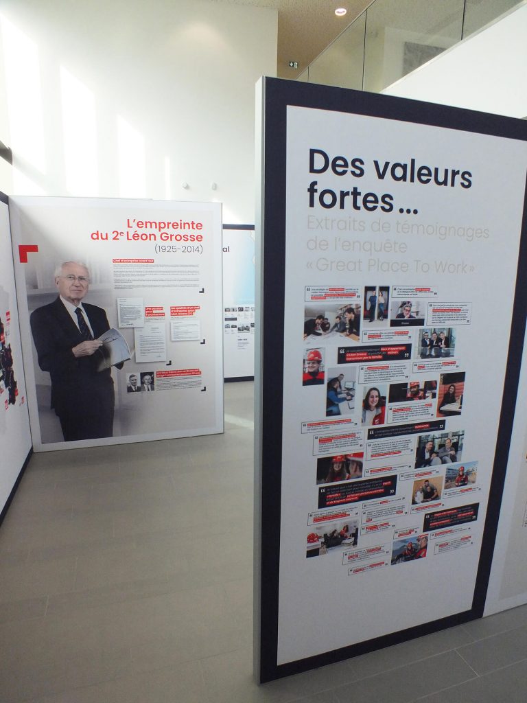 Conception et réalisation de la scénographie d’un parcours immersif afin de plonger les visiteurs dans l’histoire de l’entreprise Léon Grosse en 2023. Implantation dans le hall du siège de l’entreprise à Versailles.