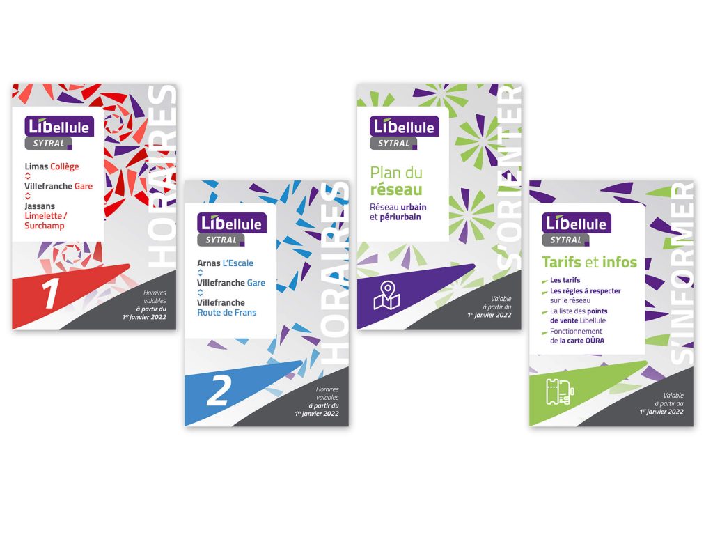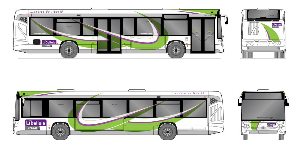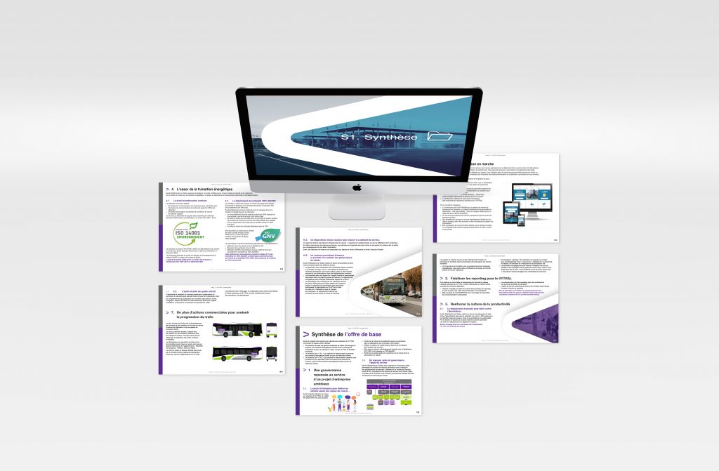 Création de l’ensemble des supports visuels (campagnes, fond d’abribus, fond de poteaux, couverture de fiches horaires, guide et plan de réseau, coverings véhicules, affiches perturbations, carte de contact, etc…) et mise en page de la réponse.