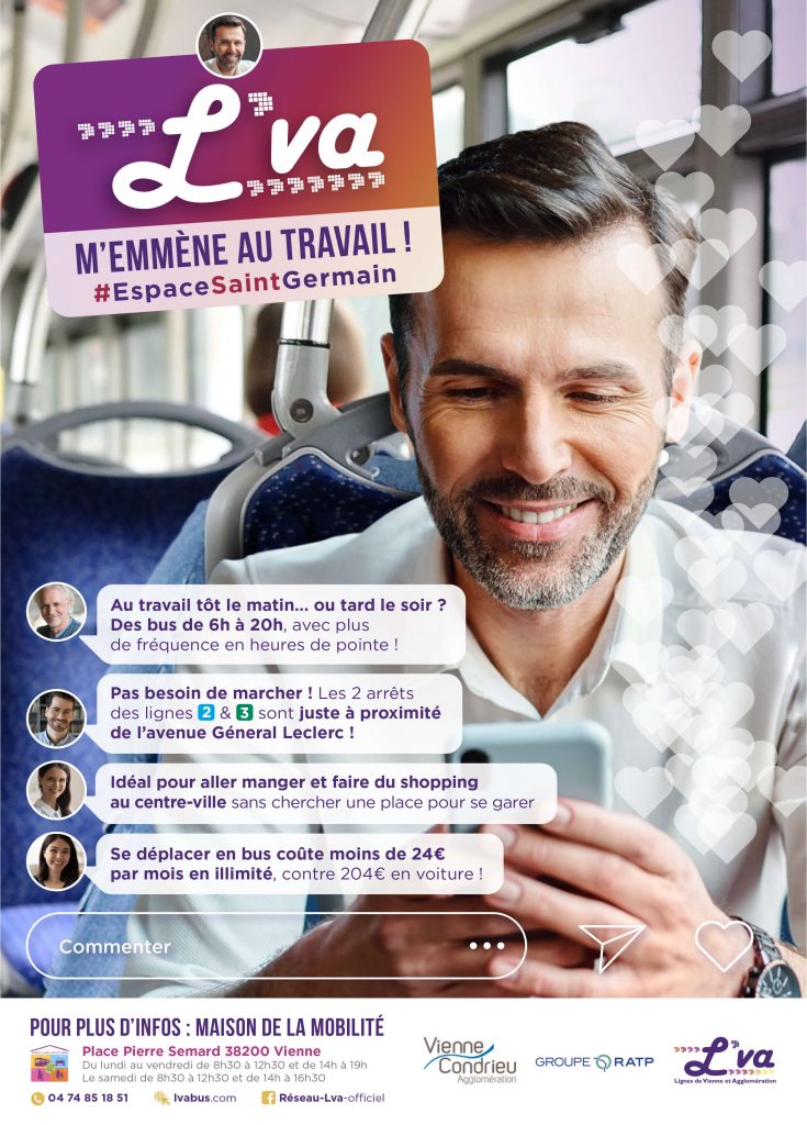 Conception et réalisation de la campagne actifs pour l’espace Saint Germain Pour Lva Mobilités Vienne en 2021.