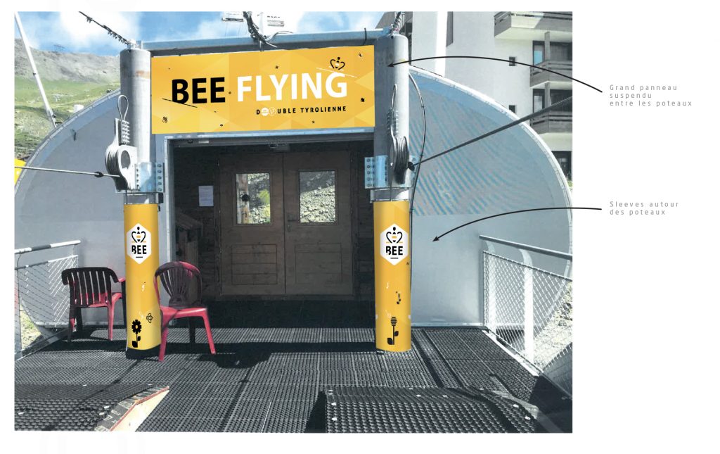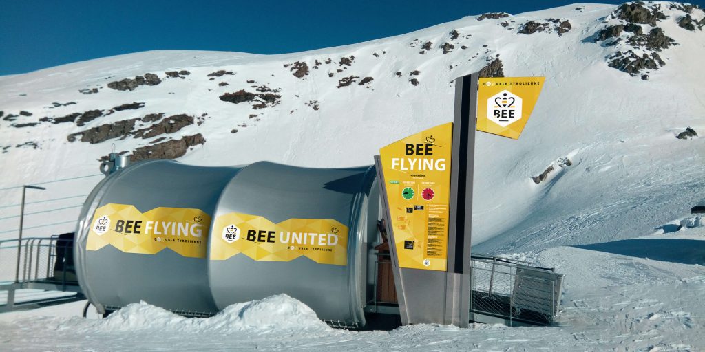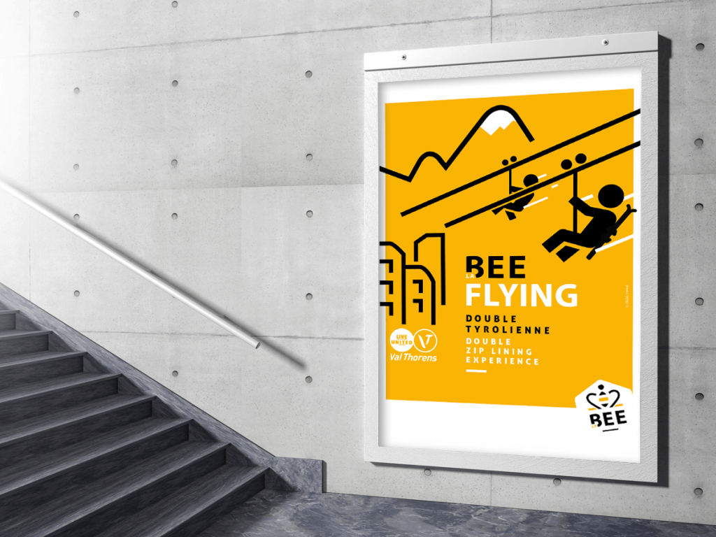 Conception et réalisation de l’identité de la tyrolienne de Val Thorens : recherche de nom, logo et déploiement de l’ensemble des supports en 2020.