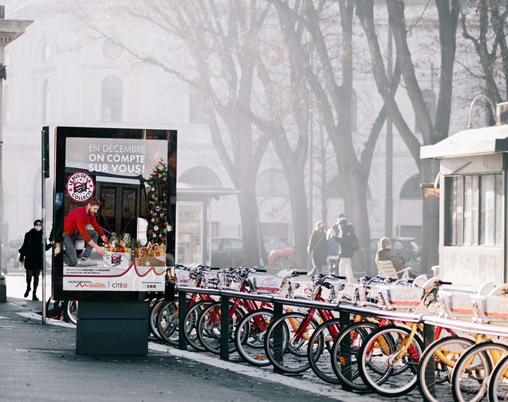 Diffusion sur un ensemble de supports urbains type muppy (120×176), abribus, diffusion digitale : bannière web, visiobus, réseaux sociaux, etc…